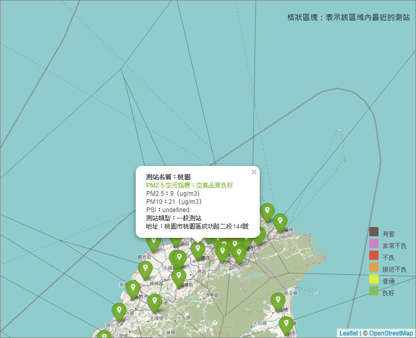 首頁精選分享台灣記情台灣空氣品質指數隨手查 PM2.5 霧霾快退散 台灣空氣品質指數隨手查 PM2.5 霧霾快退散 台灣記情, 數位生活 2 則留言 在國內許多人都有過敏的體質,尤其是遇到空氣品質很差的時候更是痛苦,像小弟我也算過敏的體質,只要空氣中灰塵一多就要開始打噴涕了,真的相當的難受,現在行政院環保署將全台空氣測站的資訊提供到網路上供大家查詢囉。而且網站還提供最近24小時空氣品質預測及最近的空氣測站相關資料,提供民眾最符合實際需求的空氣品質資訊,讓我們能盡量避開PM2.5與霧霾的毒害。 空氣測站資訊網頁版:空氣品質監測網 台灣即時空氣品質地圖:PM2.5 版本 標籤:台灣空氣品質 世界末段班, 台灣空氣品質排名2017, 台灣空氣品質最好的地方, 台灣空氣品質最差, 台灣空氣品質監測站, 台灣空氣品質預報 2 則留言 Chin 2008 年 08 月 29 日 空氣品質目前不列入停班停課條件 我還是得出門啊 囧 回覆 Mango 2008 年 08 月 26 日 超噁的說… 尤其現在正在感冒的我,更是覺得外面的空氣好混濁啊>"< 回覆 發表迴響取消回覆