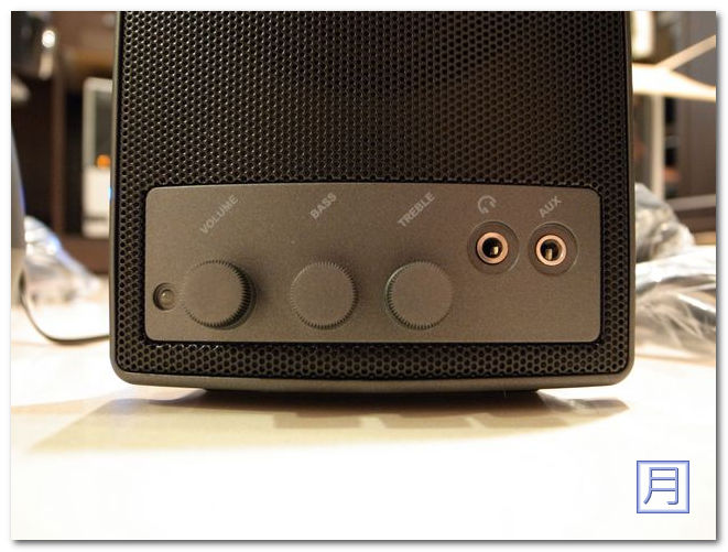 ▼ 衛星喇叭提供音量、重低音的調整旋鈕與耳機、音源輸入的插孔,可以說是非常方便呢,直接在面前就能調整了。