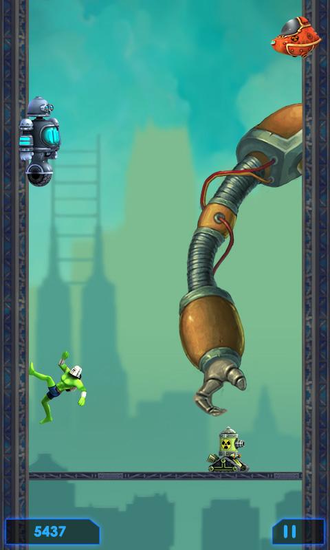 今天要介紹這款 Android 遊戲「City Jump-Strike Back」,相信許多人都玩過「Ninja Jump」,就是在直立式的螢幕中操作在城市的超級英雄,在跳躍過程中消滅外星入侵地球的機器人大軍,當消滅相同的外星人三次後就能發揮短暫的超能力,在超能力發動的期間是完全無敵的,在遊戲中共有三種不同類型的超能力,等著大家去發現唷。