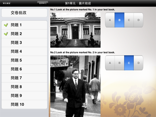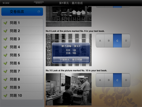 ▼ 看到這樣的畫面是否很熟悉呢? 在畫面中您聽取完題目內容就能作答。