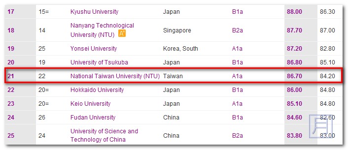 “以台灣大學成績最佳,排名第22。”