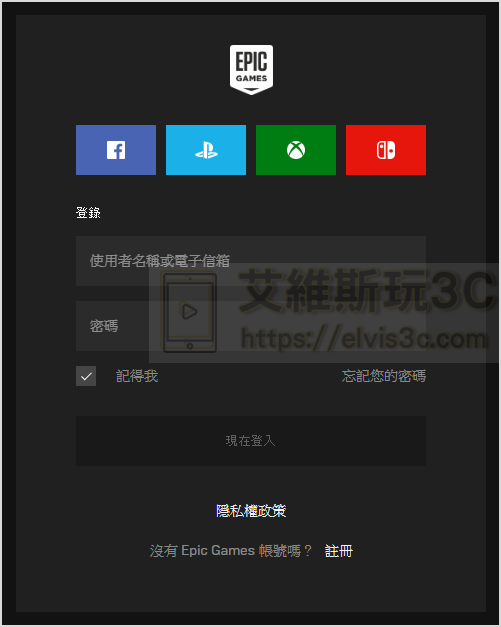 ▼ 在下載EPIC遊戲平台並安裝完成後,一樣用剛剛取得遊戲的帳號進行登入。