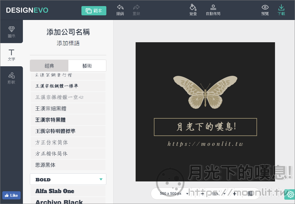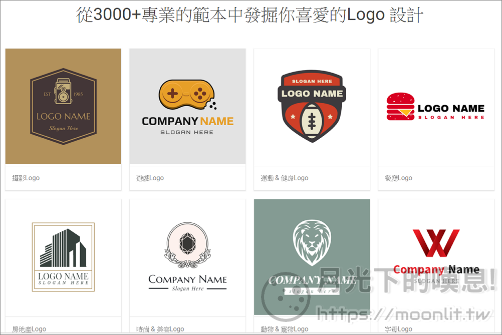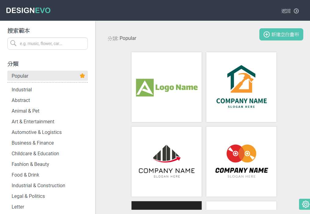 ▼ 如果真的沒有美術天份,您可以點擊左上方的範本按鈕,我們就能在3000多個範本中選擇自己喜歡的LOGO來加工,雖說是範本,但每個幾乎都能拿來當作商標使用的等級啊。