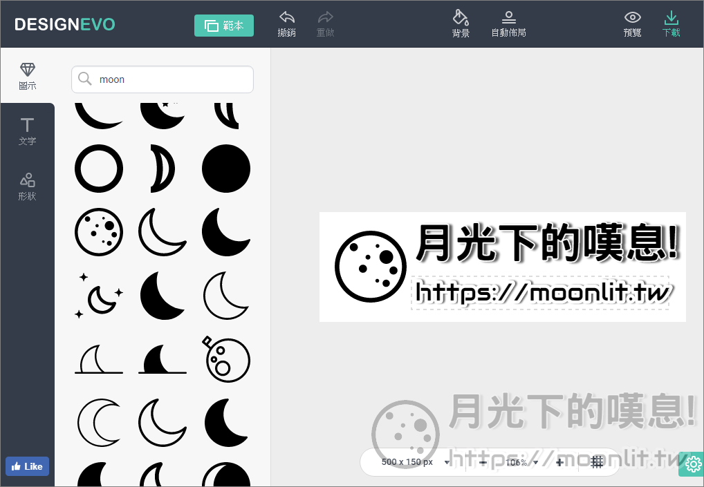 ▼ 如果怕會撞LOGO,建議還是自己從零開始吧,自己做一個也沒很難,只是隨意將DESIGNEVO所內建的素材套用一番就能作出非常棒的LOGO。
