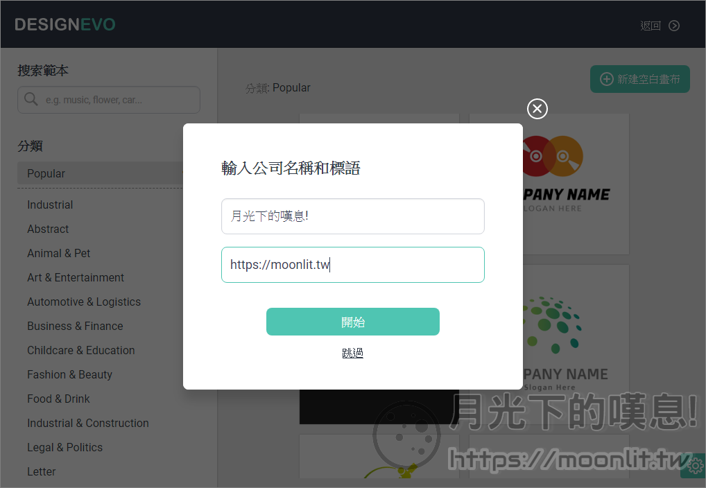 ▼ 點擊喜歡的範本後您可以輸入您的公司名稱與標語。