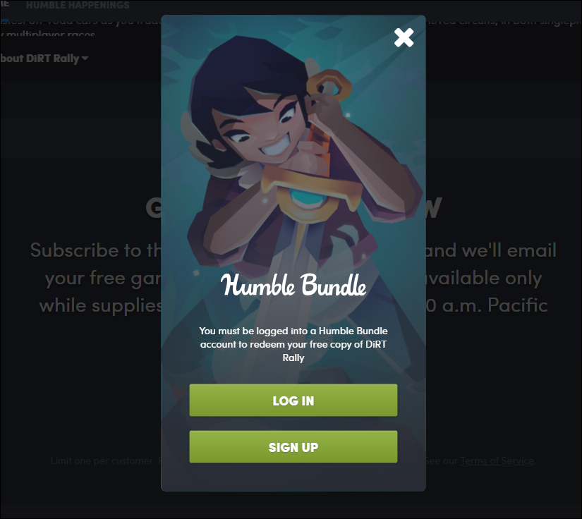 ▼ 在這裡就必須先註冊HB的網站帳號才能領取遊戲,沒有帳號的話就點擊 SIGN UP,已有帳號的話就點擊 LOG IN 登入。