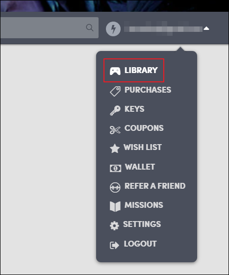 ▼ HB平台的好處就是能將遊戲匯入Steam,讓我們能使用單一平台較為單純,請點擊右上角的功能表,選擇 LIBRARY 進入我們在HB的遊戲列表。