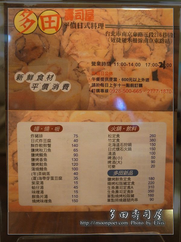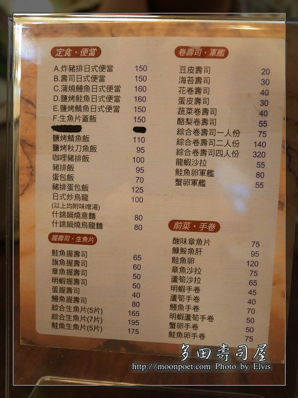 艾維斯 這星期又到另一間網路頗負好評的日式料理店用餐,多田壽司屋是一間平價的日式料理屋,它餐點的價位並不貴,而且給的份量很大方,艾維斯 特別推薦特上生魚片蓋飯,用料非常實在。