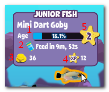 3.遊戲金幣:這是您所賺來的遊戲幣,會隨著魚的成長而增加,可用來購買商店中的物品。