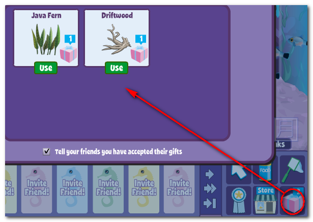 ▼ 在魚缸的左下角會有「Give Fish Love!」的按鈕,每天可以領取一次獎勵。