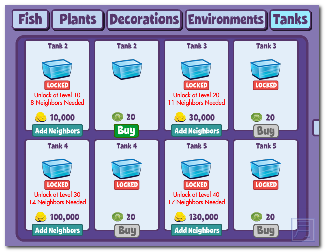 ▼ Zynga 遊戲的習慣,想擴充魚缸要先加足夠的鄰居數,多邀請朋友一起同樂吧。
