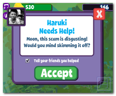 ▼ 每日拜訪朋友家會出現這樣的跳窗,按「Accept」可幫忙朋友,即可取得獎勵與金幣唷。
