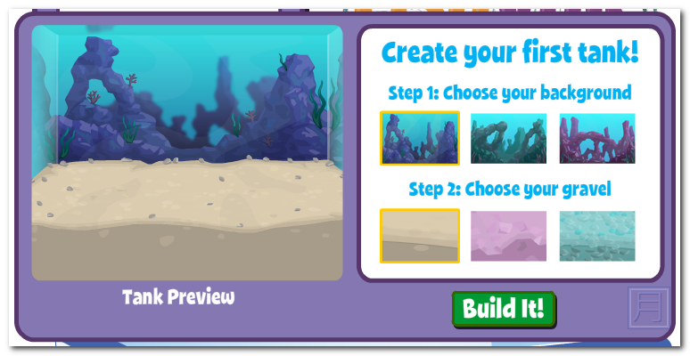 ▼ 第一次進入遊戲會有很貼心的新手導引,一開始要先建立魚缸。