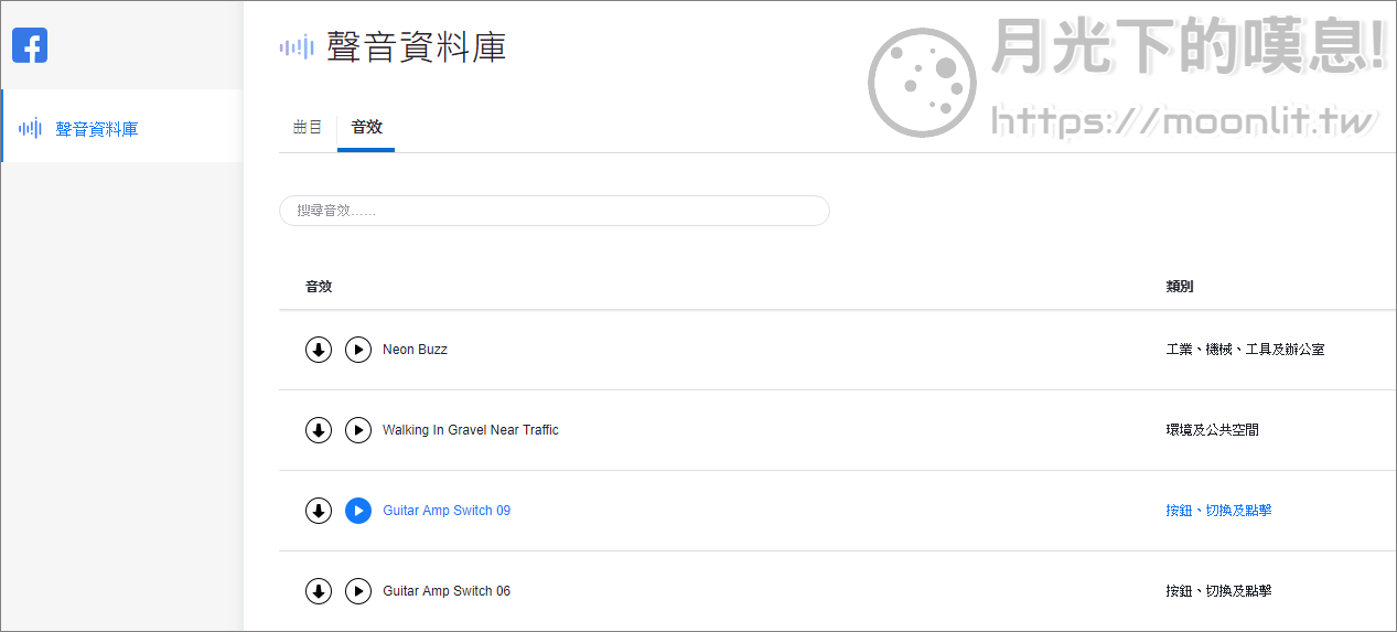 Facebook 聲音資料庫 製作影片用途音效音樂素材免費下載