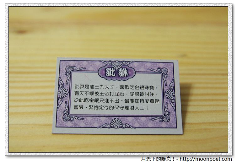 ▼ 豼貅:豼貅是龍王九太子,喜歡吃金銀珠寶。有天不乖被玉帝打屁股,屁眼被封住。從此吃金銀只進不出,最能加持愛買儲蓄險、緊抱定存的保守理財人士!