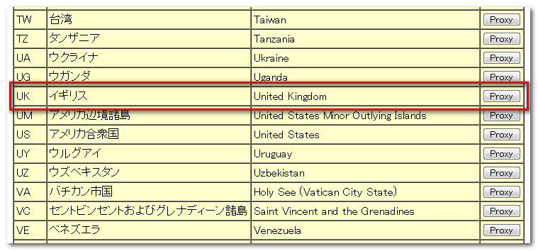 ▼ 在 Proxy 列表中看到UK的項目,按下 Proxy 按鈕取得列表。
