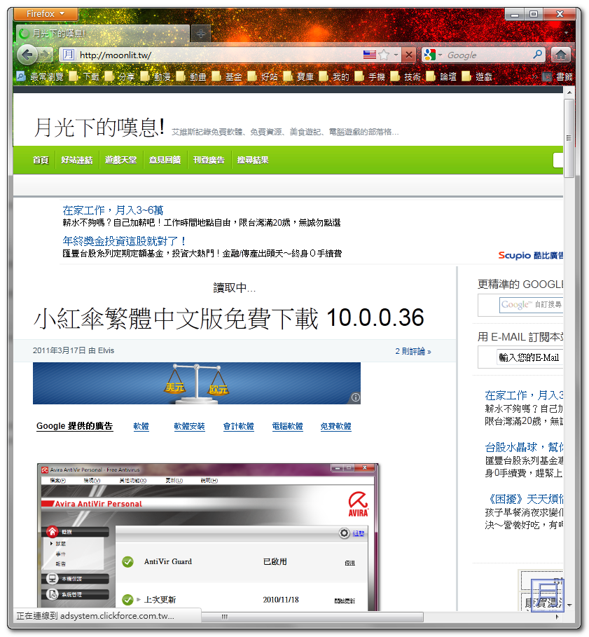 最近瀏覽器界不斷推出版本進化,像 IE9 正式版推出,Opera 11 也於年前發表,而 Firefox 4 版也推進到 RC2 了,我想離正式版的推出也不遠了,而 Firefox 4 最大的改變我想也是著重在介面的簡化,它與 IE9 走相同的面版簡化風格,將功能、網址列盡量縮減到兩列內,讓瀏覽的面積增加,看起來比較不會那麼壓迫,但我想最重要的還是瀏覽的速度提升與核心穩定度,目前 Firefox 在這方面好像還與 Chrome 有些差距,但也是很棒的瀏覽器了。