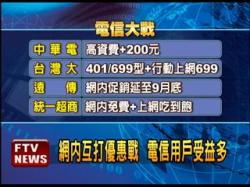 電信業的網內互打免費割喉戰似乎在遠傳宣布開戰後,其他業者也紛紛加入戰局,像中華電信、台哥大,連7-Mobile(統一超商電信)也不想放棄這塊市場,畢竟網內互打免費之前就只有亞太、威寶在玩,這次有這群電信業的龍頭加入,相信就更好玩了。