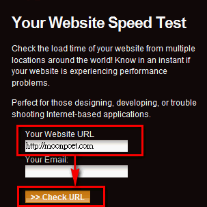 ▼ 請在右邊「Your WebSite Speed Test」中的「Your Website URL」欄位輸入網址後按下「Check URL」。