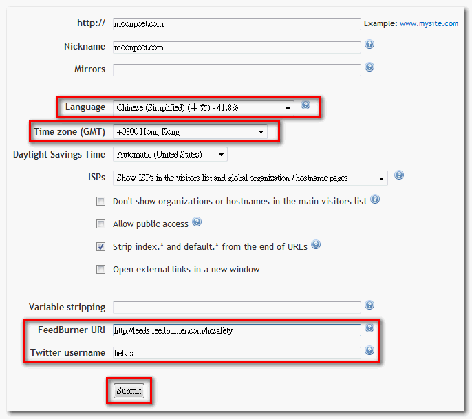 ▼ 接著會跳到這個表單畫面,將「Language」改成(中文)、「Time zone(GMT)」改成+0800 Hong Kong。