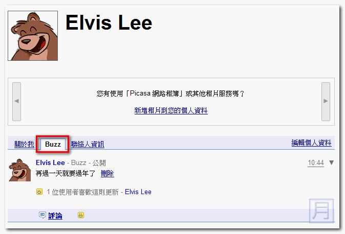▼ 登入後,您可以看見在左邊的連結中多出了一個「Buzz」,點擊後就能開始使用。