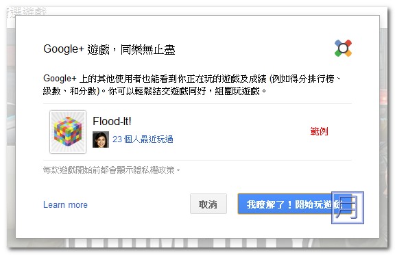 ▼ 隨便選擇一款遊戲點入後,就能看到 Google+ 的聲明事項。