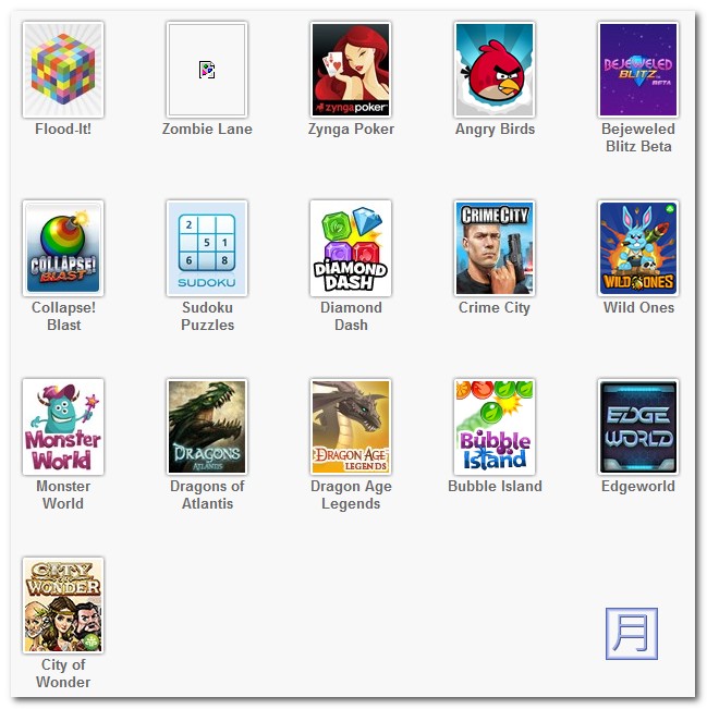▼ 目前共有16款遊戲,有些是單機版,單機版的話就會以分數的方式來與朋友比較,社群類遊戲就和臉書的運作方式相同。