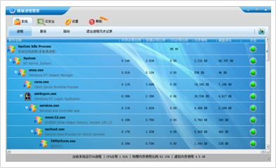不但具有一般常見的程式管理功能,如、CPU、記憶體、硬碟、網路等使用情況,還更詳盡的監控了各個程式資源的平均使用情況,絕對是當前最完善的程式資訊檢測系統。