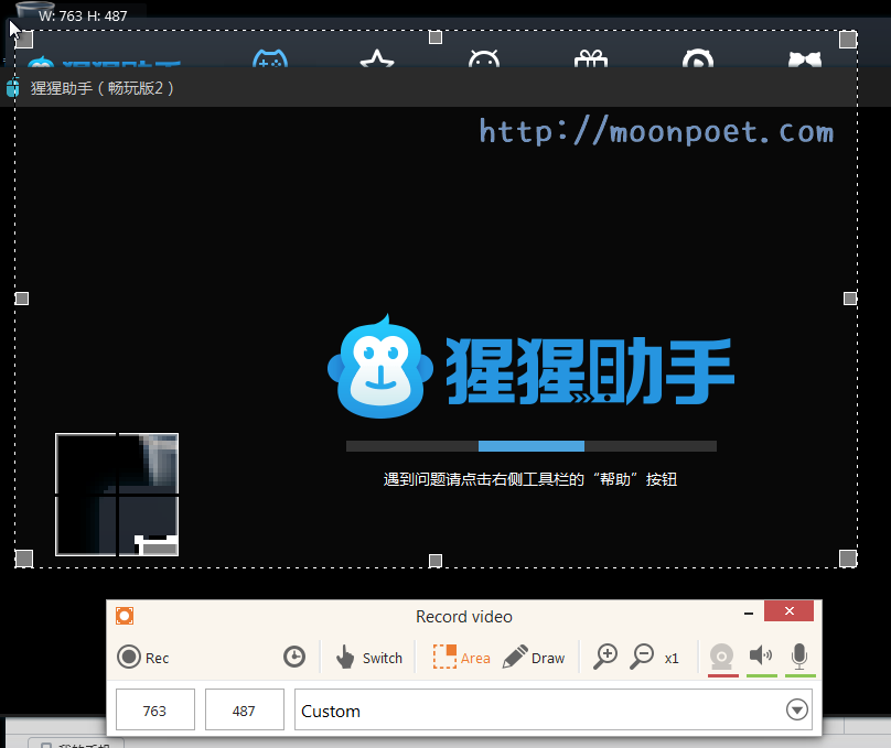 ▼ 我們來測試 Cutsom area 自訂區域,在這裡會出現這樣的英文句子,接著只需拖曳方式拉出您要錄製的範圍即可。