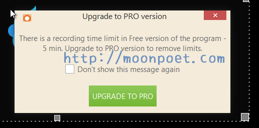 ▼ 免費版本只能錄製5分鐘,這是比較可惜的一點,但它沒有浮水印,也算是有部份的優點啦。