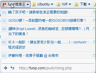 ▼ 依個人需求安裝所需要的元件,我當然是全部都裝囉,裝完後會在書籤列顯示三個訂閱項目,讓您隨時可以掌控 FunP推推王 發生了哪些有趣的事情或是觀賞最新的熱門文章,真的是超方便的啦。