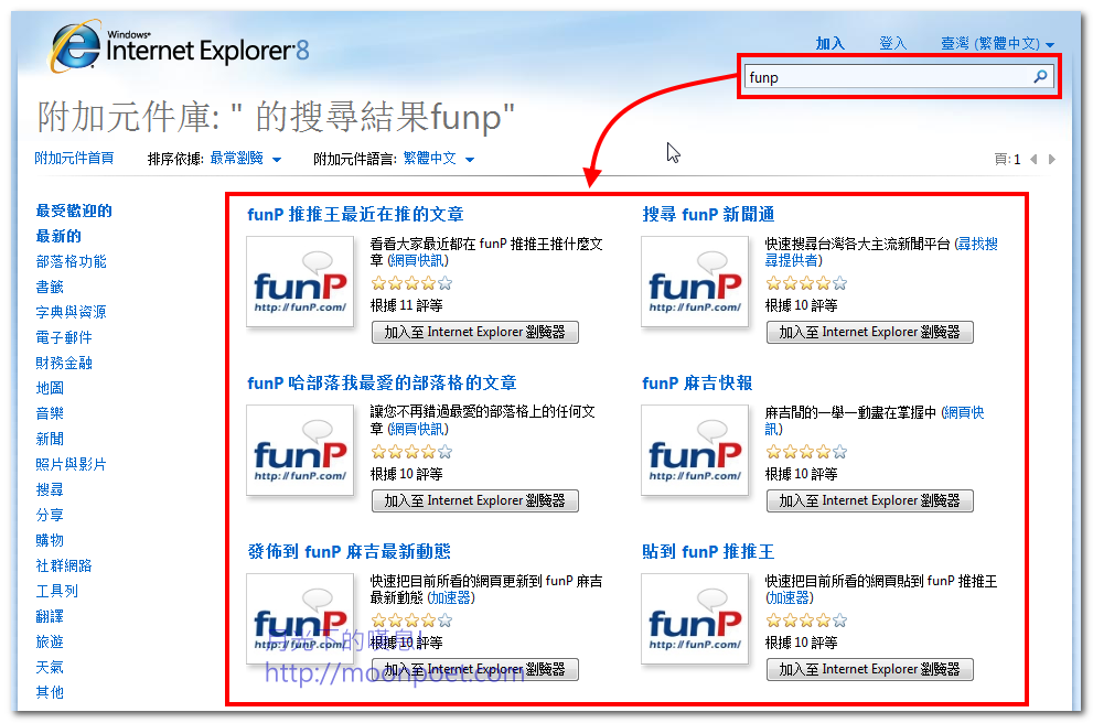 您是 funP推推王 的愛用者嗎? 那千萬別錯過與 funP推推王這麼麻吉的 Internet Explorer 8 唷!