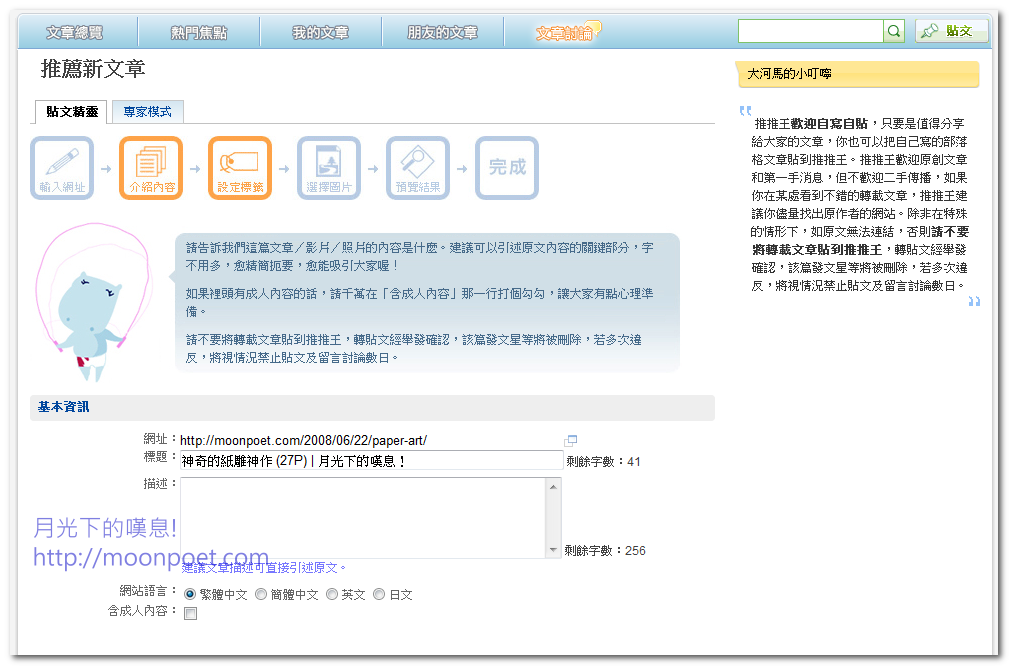 ▼ 接著就跟您平常時推文的模式相同囉,輸入文章的相關訊息後送出就能完成推文的動作囉。