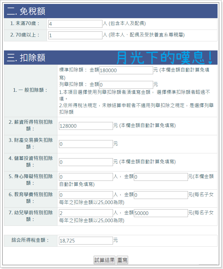 ※本程式僅提供簡易估算稅額功能,實際應納稅額請另依申報書填寫計算。