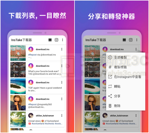 Instagram影片下載工具 InsTake 打包影片和照片及轉發神器