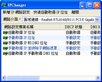 [軟體]IPChanger v1.1 … 方便讓您隨時切換IP設定 …
