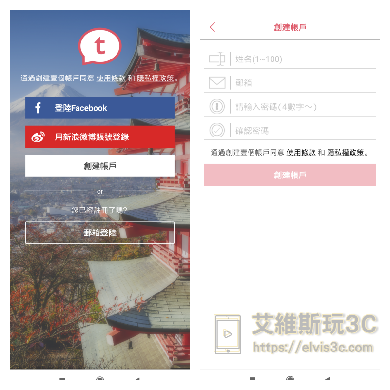 ▼ 軟體安裝完成後,我們能直接使用FB或是自行建立一個帳號進行登入。