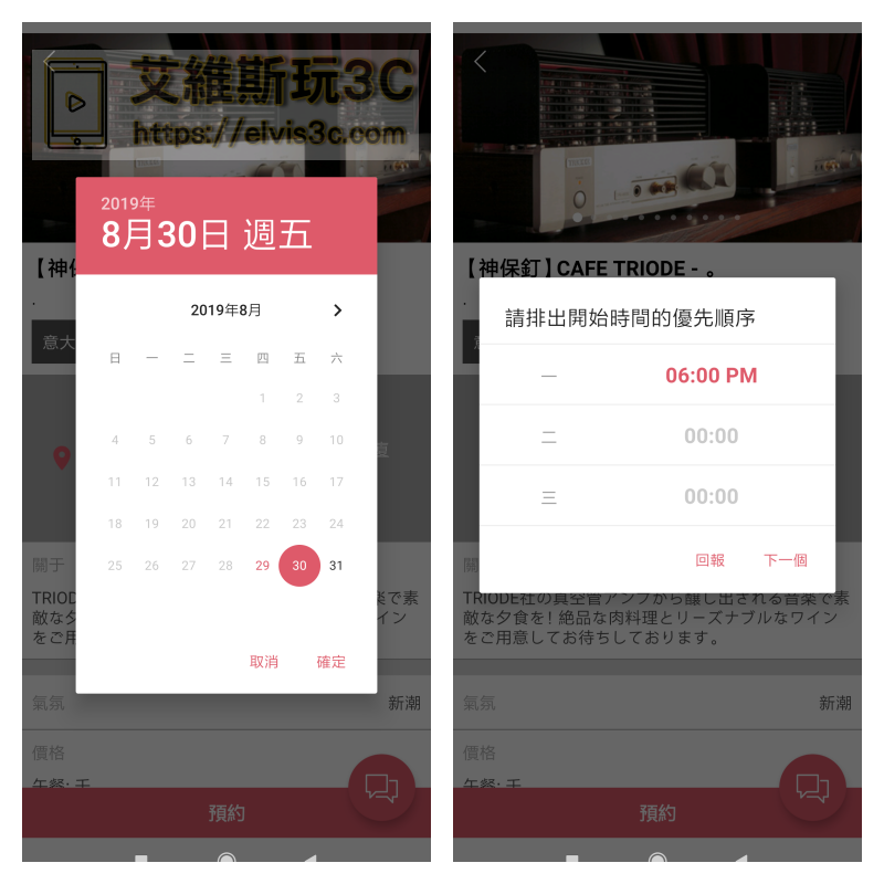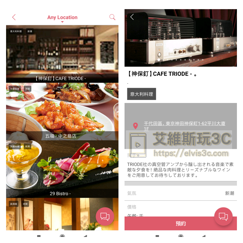 ▼ 我們先以餐廳來做示範,您可以在最上方點擊選擇您想要的地區,接著就會秀出該地區的餐廳,我們隨便選一個CAFE TRIODE來作示範,點進去後請拉到最下方選擇預約。