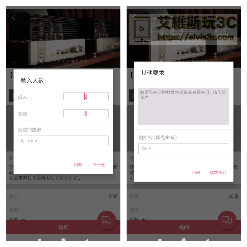 ▼ 這裡非常貼心的還能選擇人數及輸入其他要求。