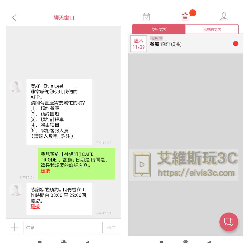 ▼ 接著就會透過 tripla 的服務團隊來協助您進行預約的動作,有任何消息都會透過聊天視窗來通知您,您可以在委托清單中觀看您目前預約的進度。