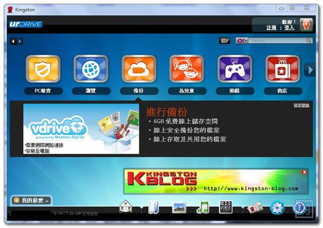 ▼ 「urDrive」第三個功能是備份,在這裡它使用 Maxthon 的帳號功能,提供vdrive 6GB的雲端儲存空間,在這裡能夠備份您所有的檔案,並且提供線上存取與共用功能,讓我們的檔案可以多一個保障。
