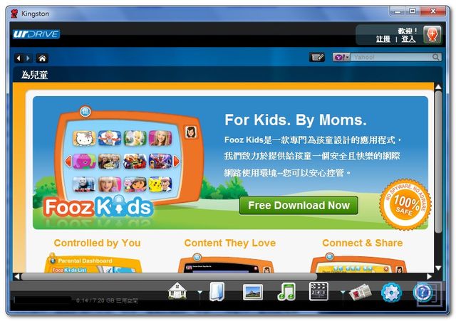 ▼ 「urDrive」第四個功能Fooz Kids,它能提供家長對於未成年小孩在上網時能完全的監控,Fooz Kids 本身就提供許多適合兒童的網頁與遊戲內容,讓我們可以更放心的給小朋友上網。