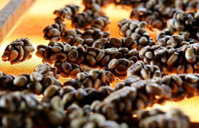 由於Luwak的活動範圍是屬於中低海拔,所以咖啡品種大部分是羅布斯塔豆,至於高海拔的阿拉比卡豆則產量更為稀有。當Luwak在夜間覓食時,透過其敏銳的嗅覺,只挑選咖啡樹中最成熟香甜、飽滿多汁的咖啡果實食用。果實經過其消化系統分解掉外表的果肉,然而堅硬的果核仍不被消化原封不動地被排出。消化期間Luwak的胃酸分解了咖啡豆的苦的物質「蛋白質」,及腸道特殊菌種發酵而產生無與倫比的變化,它的風味變得獨特,味道特別香醇,豐富圓潤的香甜口感其他咖啡豆更是無法比擬。於是印尼人就把Luwak發酵後排出的咖啡豆,經收集、晾乾、清洗、脫殼、挑選、烘焙等步驟,製造出全球最稀有、最獨特、最珍貴的咖啡。(來源)[W:麝香貓咖啡]的維基注解