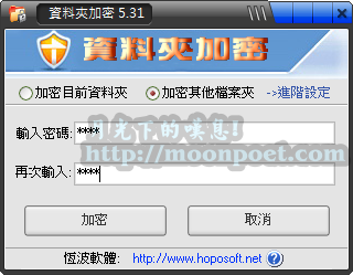 安全指數:★★★★★ 使用256位元的 Blowfish 算法完全將文件加密 ( 可防止所有破解 )