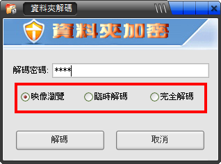 臨時解碼:臨時性的將檔案解碼,可隨時恢復加密