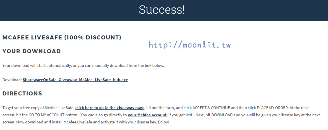 ▼ 送出後就會自動跳到下載頁並同時啟動下載,如果沒有自動下載就直接按頁面中的連結吧。