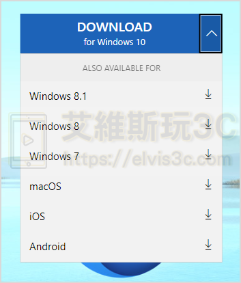 ▼ 如果想下載其他版本也可以點擊 DOWNLOAD 鍵的下載選單,選擇您對應的版本。