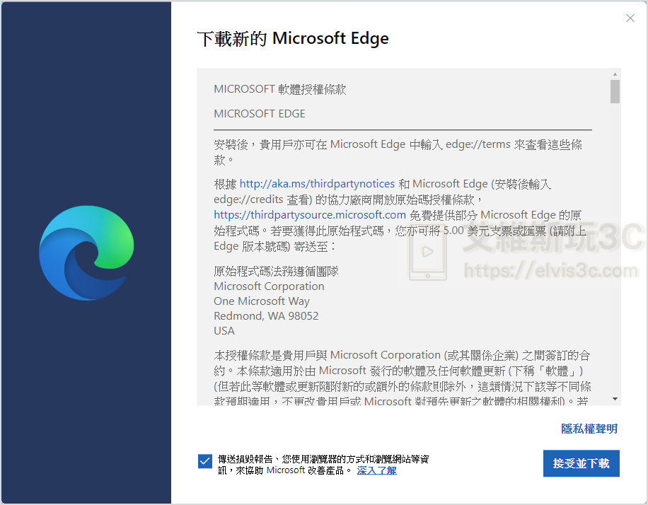 ▼ 下載時會詢問您是否認同軟體授權條款,選擇接受並下載即可開始下載。