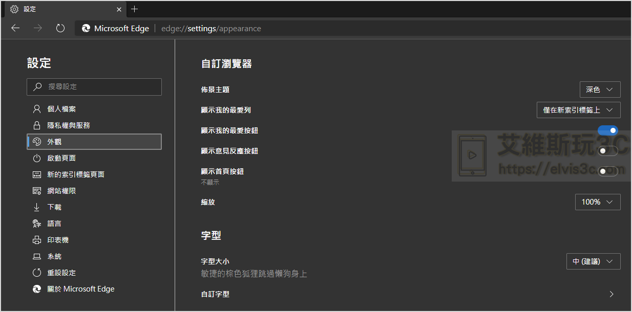 ▼ 另外在外觀中我們能選擇深色,就像畫面中的視窗效果一般,深色在夜間或是低光源的環境對眼睛的負擔較小,這個也是蠻貼心的功能。