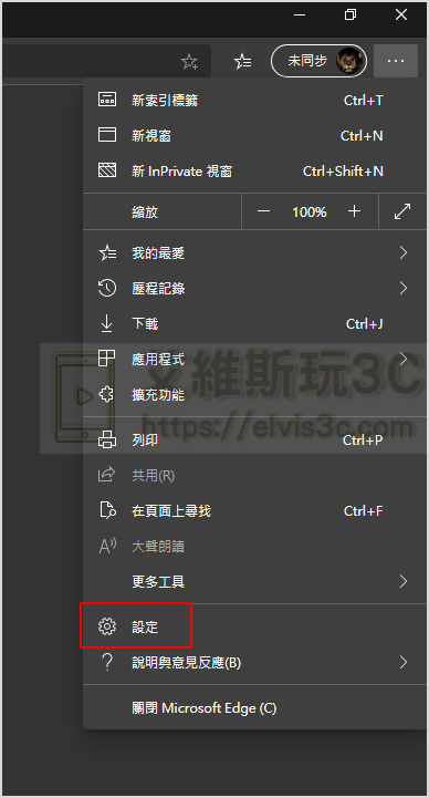 ▼ 接著我們進入設定的功能教學,大家可以在最右邊的…發現下載的功能選單,其實長期使用Chrome的朋友一定會覺得很熟悉,選擇設定。